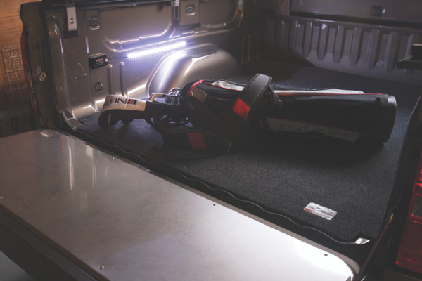 18 inch motion activated LED light strip with 3M adhesive. Can be mounted at front or rear of truck bed. Built-in adjustable auto shut off allows the light to shut off after 1 minute or no motion. Battery operation makes this light unique and no wiring is necessary. Can be used in boats, SUV's, or anywhere.