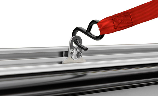 Freely reposition along rails to easily secure cargo in truck box. 50 lb. maximum capacity per tie down. Set of four. Only for ADARAC(TM) Rails with mounting channels. Tie down strap not included.