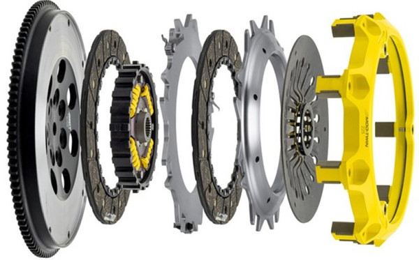 T1S-M01 Mod-Twin 225 HD Sprung Street Kit is designed for high powered AWD street cars. It unites uncompromised pedal feel, durability, engagement quality with very high torque capacity by combining twice the organic friction surfaces with an ultra-durable spring center Mono-Drive hub in a completely modular design. Each diaphragm spring endures an exclusive four-stage heat treating process providing a consistent light pedal feel. Steel-backed Friction Plates with high quality organic friction materials deliver stable friction coefficient, good heat capacity and long clutch life. These Friction Plates uniformly transfer torque to the Mono-Drive sprung hub assembly which extends input shaft life and reduces driveline shock from torsional vibration. This kit includes a CNC-machined and dynamically balanced flywheel, pressure plate cover, diaphragm spring, face, puck-style ceramic friction plates, sprung Mono-Drive hub assembly, floater, patented Monoloc Collar, release bearing, alignment tool and pilot bearing (if needed). Mod-Twin clutches are fully rebuildable and most components can be ordered separately.