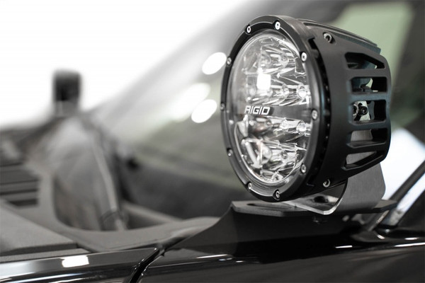 Illuminate your off-road adventures with our Ditch Light Brackets. Manufactured from 1/8-inch American steel and coated in a durable 2-stage black powder finish, these light mounts match your truck's styling. The light brackets are designed to mount to the hood hinges, positioning cube or round lights near the A-pillar. They are compatible with a variety of 3-6 inch LED lights from quality brands like Rigid and Baja Designs. Lights can be angled forward to light your path ahead, or towards the sides to enhance visibility around corners and obstacles. Integrated wire channels keep wiring neatly tucked out of view for a clean install. And as always, these are fully bolt-on and Made in America. * Please Note: Some light configurations may require wiper blade arm adjustment.