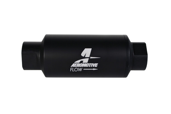 An inexpensive insurance policy to protect your investment, proper filtration is key to fuel system performance. Engineered filter solutions are required to achieve protection with minimum restriction. For 200 3,000 plus HP applications, our filter assemblies offer unmatched flow, ease of installation and maintenance, along with the impeccable machining and finish you've come to expect from all Aeromotive components. High-flow, 10-micron Microglass (fine) replaceable element. Compatible with gasoline and alcohol fuels. Impervious to water contamination. Flows 2,000 lb/hr with a pressure drop of less than 1 PSI. ORB-10 ports. Fittings available to adapt these filters to AN-10, -08 and -06 line sizes. Compact size: 5.5' long x 2' diameter.