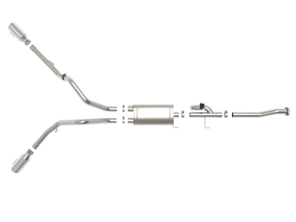 This system produced gains of up to +13 HP and +18 lbs. x Ft. TQ., as measured on our in-house dyno. This cat-back exhaust system is constructed of 3" mandrel-bent 304 stainless steel tubing for maximum strength and durability. This system features a high-flow stainless steel, producing an aggressive sound. Muffler finish may vary. Finishing off this exhaust system are dual 4-1/2" diameter polished 304 stainless steel clamp-on exhaust tips. The tips feature an aFe POWER logo plate riveted on for a unique style. Gemini XV exhaust features an electronically controlled exhaust cutout valve to quickly switch between mild and aggressive tones at the push of a button. This kit includes two key fob remotes, control module, valve motor, and all necessary wiring. It's a simple installation, requiring no cutting of any wires or interference of the automobile's electronics. Utilizing factory style flange and hangers this system is a direct bolt-on system, which requires no cutting or modifications for a hassle-free installation. Utilizing state-of-the-art computer-aided design technology, this exhaust system is designed for custom, high tolerance factory fitment. 100% MIG-Welded for race-proven strength and durability.