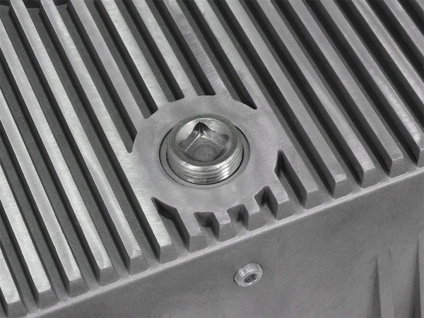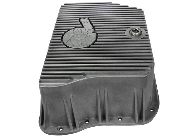 aFe POWER Street Series deep transmission pan brings performance engineering to the protection of your trucks transmission. This transmission pan has additional capacity for 3 to 4 more quarts over stock at the factory line, a magnetic drain plug and a 1/8" NPT port for your temperature sensor. Built-in internal and external fins transfer heat from the fluid to the outside air for maximum cooling. This transmission pan is constructed out of durable die-cast A380 aluminum with reinforced ribs and a raw finish with machined accents for maximum strength and styling.