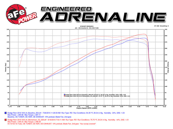 This Momentum GT intake system out flows the factory intake by 24 Percent . The one-piece sealed housing includes auxiliary air inlet to eliminate the use of multiple-piece housings and ensure the coolest air intake charge available. A large, clear sight window is used for a hassle-free filter inspection and an aggressive style. A urethane plug is also included if you wish to block off the auxiliary air inlet. This system uses a high quality, dyno-tuned intake tube to achieve maximum power gains while maintaining a perfect fit. A custom high temperature reinforced silicone elbow coupling with aluminum fitting is included for easy install to the factory breather line.