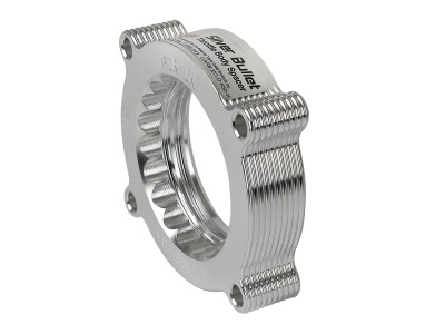 Silver Bullet throttle body spacers create turbulence in the air flow at the point just prior entry into the engine increasing horsepower, torque and improving throttle response and fuel efficiency. Silver Bullet throttle body spacers are constructed out of durable T-6061 billet aluminum and using a unique serrated/helix entry to create turbulence at the manifold while eliminating the annoying whistle found in other helix only throttle spacers.
