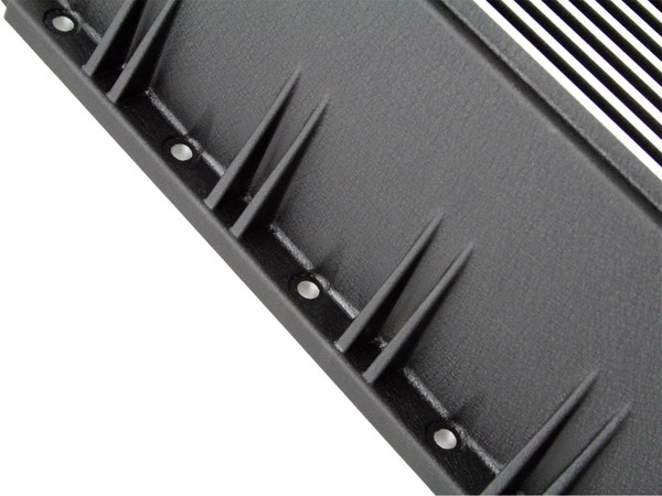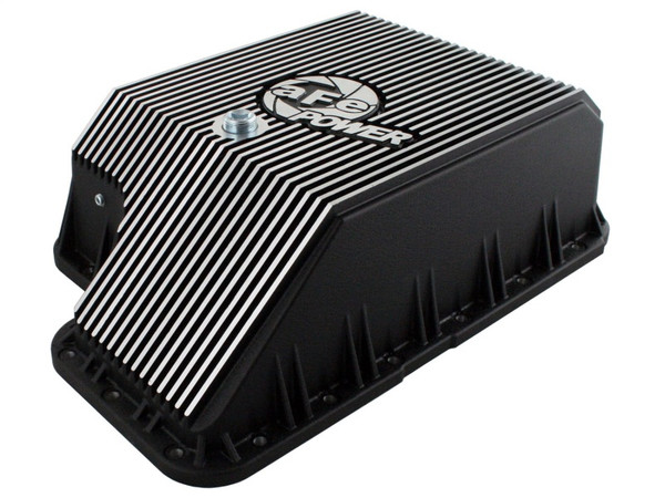 aFe POWER Pro Series deep transmission pan brings performance engineering to the protection of your trucks transmission. This transmission pan has additional capacity for 7-1/2 more quarts over stock at the factory line, a magnetic drain plug and a 1/8" NPT port for your temperature sensor. Built-in internal and external fins transfer heat from the fluid to the outside air for maximum cooling. This transmission pan is constructed out of durable die-cast A380 aluminum with reinforced ribs and a wrinkle black powder-coating for maximum strength and styling.