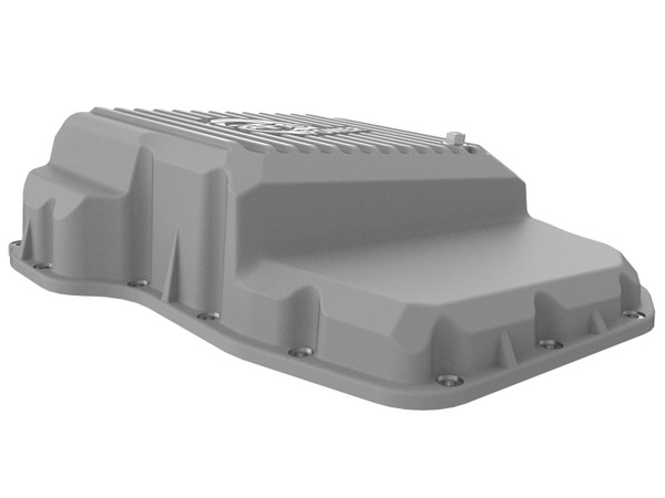 aFe Power's new deep transmission pan brings performance engineering to the protection of your trucks transmission. This transmission pan has additional capacity for 2 more quarts over stock at the factory line and a magnetic drain plug to capture loos particles. Built-in internal and external fins transfer heat from the fluid to the outside air for maximum cooling. This transmission pan is constructed out of durable cast aluminum with reinforced ribs and a raw finish with machined accents for maximum strength and styling.