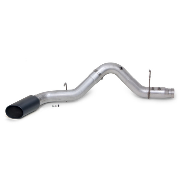 5" aluminized steel constant-diameter DPF-back system with Patented negative backpressure SideKick tip. 85% less backpressure and 15% lower exhaust exit temps than stock, allowing the engine to produce more horsepower. Improves flow and cuts backpressure. Includes Huge Polished Chrome Patented SideKick tip.Banks Power introduces the new 5" Monster Exhaust designed specifically for the 2017-2019 GM 6.6L Duramax L5P 2500/3500 HD pickup trucks. The DPF-back exhaust system features constant-diameter 5" mandrel-bent aluminized steel tubing and a massive patented tip which virtually eliminates backpressure after the DPF and prevents trailer meltdown.With the stock exhaust nozzle measuring 2.85" compared to the Monster Exhaust’s massive 5" outlet, the Banks system offers a 192% greater flow area than stock. The Monster Exhaust boasts 85% less backpressure than stock, leading to more power and increased fuel economy.The Monster Exhaust also provides a 15% reduction in exhaust temperature two feet behind the tip during regen. The Diesel Particulate Filter (DPF) on the Duramax L5P is cleaned through regeneration in which scorching exhaust gas temperatures can last up to 20 minutes while driving. Unlike the stock Duramax exhaust, which directs a prolonged jet-like blast of super-heated exhaust gas directly at anything being towed, the Monster Exhaust is aimed out to the side of the truck. This allows ambient air to diffuse the heated gas, eliminating the risk of melting a trailer, which has been reported by many Duramax owners.Duramax owners can choose from two huge patented 6.5" x 7.5" ob-round slash-cut exhaust tips: chrome-plated polished stainless steel or high-temp matte black. And, unlike other brands, Banks’ chrome-plated stainless tip will not turn brown with heat.