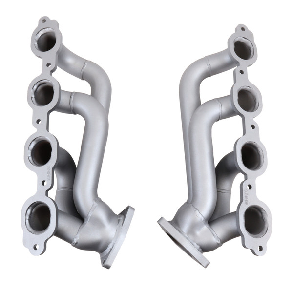 These BBK Performance shorty tuned Length exhaust Headers are designed and constructed as direct fit replacements for all 19-22 Chevrolet GM 5.3 6.2 Full Size Truck applications. Each header is manufactured with 1-3/4" CNC mandrel bent tubing that offers unrestricted exhaust flow for increased horsepower and torque over factory Original Manufacturer manifolds. BBK tuned Length headers offer improved scavenging waves for better combustion, which leads to improved performance and fuel economy over stock or equal Length headers. As with all BBK Performance exhaust headers they feature a 3/8" laser cut flange for additional strength and a guaranteed leak free fit. All headers are robotically and precision hand welded and then pressure tested to ensure years of reliability and performance in the real world. All BBK exhaust headers are available in a titanium ceramic or polished silver ceramic coated finish and include new exhaust header gaskets, header bolts and hardware to complete the installation.