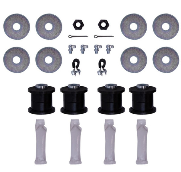 B8 Control Arms are a direct fit upgrade for factory upper control arms on trucks and SUVs. The kit contains a pair of control arms which correct the caster alignment for better straight line stability with lifted suspensions, and the improved pivot angles increase wheel travel and reduce stress on the joints. These strong black powder-coated 4130 chromoly steel arms are a tubular design which allows for more spring and shock clearance and feature greasable polyurethane bushings and heavy duty ball joints for the ideal combination of ride quality and durability with minimal maintenance needed. They come with detailed instructions and all necessary hardware for easy installation and are compatible with all Bilstein shocks and coilover kits. All components are replaceable.