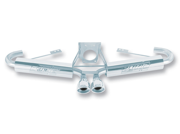 EXCEPT 5 Speed Transmission. The Porsche Boxster & Boxster S with nice power and a mid-engine platform, are great handling sports cars. BORLA R&D engineers developed a 1.75" diameter mandrel-bent high-quality T-304 austenitic stainless steel package with emphasis on weight, as the exhaust is positioned significantly back at the very rear of this vehicle. The BORLA Cat-Back system managed to come in at less than half the weight of stock, adding to a better balance for those winding highways these cars love. The system delivers the classic s-Type sound with no drone inside the vehicle. This part flows an impressive 263cfm more air than stock, which accounts for the added performance. A true testimony to the incredible effort of a professional staff, taking a great car and making it even better. BORLA always is a value-added component, and that was never truer than in this application. The revolutionary BORLA Cat-Back looks great with the dual 3.5" x 2.75" oval, angle-cut polished T-304 stainless steel tips. The incorporation of a throaty powerful sound, solid power enhancements and better gas mileage make this BORLA exhaust a winner for this exciting race-bred Porsche Roadster. While many exhaust companies talk about racing, BORLA mufflers and exhaust systems are tested every weekend on race tracks around the world. The BORLA success is unmatched, and that effort transfers to the BORLA street systems that are a perfect match for the similar Porsche legacy.