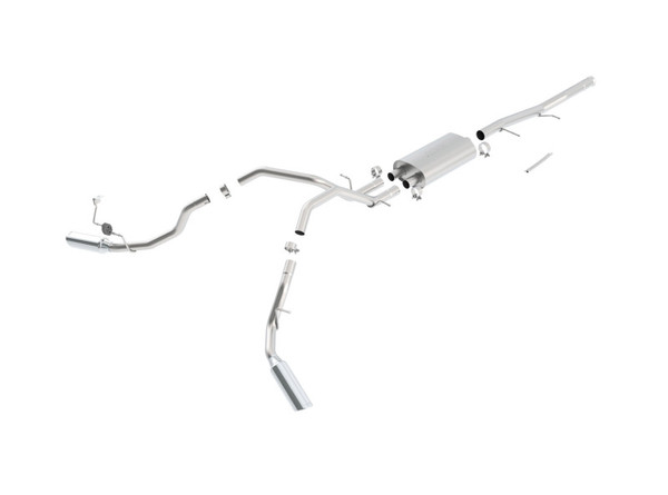• This 2.75 diameter into dual 2.25" Cat-Back system delivers the mellow Touring sound with no drone inside the vehicle. The system features single 4" round bright chrome on T-304 stainless steel tips on each tail pipe. Borla Cat-Back & Axle-Back exhaust systems feature patented straight-through and multi-core technology to unleash hidden horsepower. Increased exhaust velocity adds power, driving excitement, fuel economy, and the distinctive Borla Sound of Power respected by motoring enthusiasts everywhere. Each system is built from premium T-304 austenitic stainless steel, superior to T-400 series knockoffs (such as 409), to give you the absolute best in performance and durability. Ultra-smooth mandrel bends ensure maximum flow & power, and precision computer numerical control (CNC) manufacturing ensures an accurate fit. Just what you'd expect from the world's most experienced (and most winning) exhaust brand.