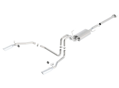 • Features bright chrome on T-304 stainless steel tips. Borla has developed a revolutionary exhaust technology that enables their engineers to deliver unprecedented vehicle-specific control over the acoustical note of an exhaust throughout the RPM range, while retaining 100 Percent of the power-adding capabilities of Borla's patented Multicore design. Called ATAK (Acoustically-Tuned Applied Kinetics), this exclusive technology (U.S. patent No. 5,248,859) produces the highest available dB (decibel) levels in the Borla street-legal lineup, and is designed for high-performance purists who prefer exhaust notes over their stereos. The focus of ATAK is to pump the volume while retaining clarity of sound, at the same time avoiding the drone and distortion typically found in louder exhausts. With ATAK, the sound output is tuned like a graphic equalizer to shape and focus sound waves for optimum high-volume output. The development of each ATAK system begins with extensive study of each vehicle's acoustical properties. The technology is based on custom-tuned attributes of the internal muffler cores, which are calibrated on a vehicle-by-vehicle basis to deliver the most desirable sound. Borla has Cat-Back and/or Axle-Back ATAK exhaust systems for a wide variety of popular applications such as Mustang GT, Camaro, Corvette, Challenger, GTR, and more in development. Like all Borla exhaust products, each system is handmade by master craftspeople and features premium T-304 austenitic stainless steel construction, mandrel bending by computer-controlled CNC machinery to ensure maximum flow and a perfect fit, mirror-polished tips.