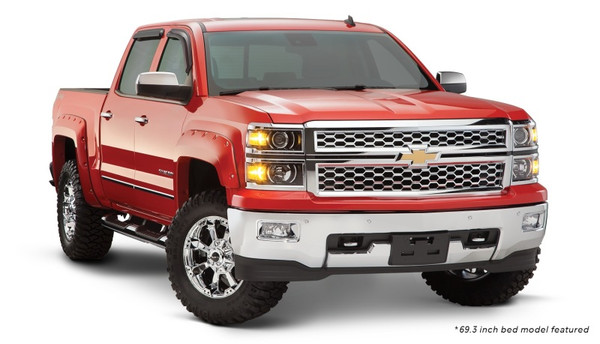 With their recessed stainless steel bolts and massive presence, Pocket Style Fender Flares are a Bushwacker original and an off-road icon. They give you the hard-core look of bolt-on flares, with no body-side sheet metal drilling required. Pocket Style Fender Flares are custom-designed for your vehicle to complement oversized tires and high-clearance lift kits. You can mount them right out of the box with their tough, OEM-style matte black finish they're UV protected so they won't chalk. You can also paint them to match or accent the body color for a factory-custom look. Pocket Style Fender Flares are made from our thick, warp-resistant Dura-Flex 2000 material and tailor-made for added durability and flexibility on the trail. When you need maximum tire coverage with minimum time and effort, it's in the pocket. Pocket Style Fender Flares from Bushwacker.