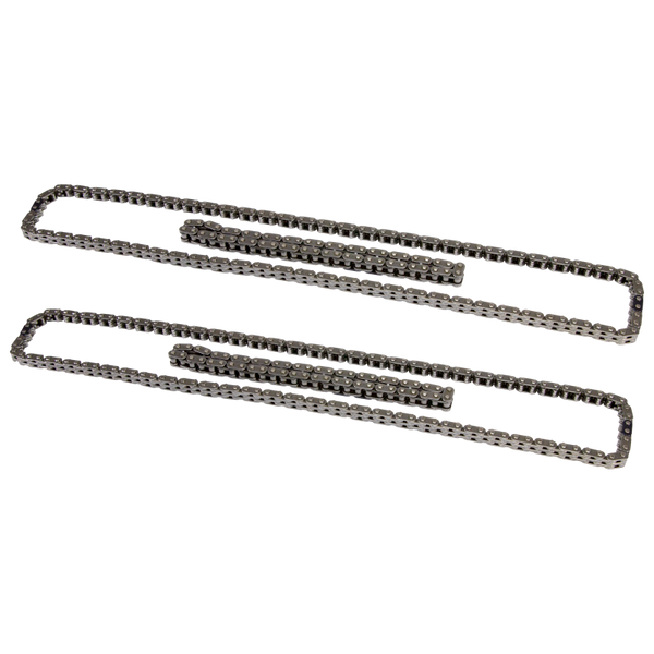 The COMP Cams Hi-Tech Timing Chain Sets for Ford Coyote engines are designed to withstand the stresses of upgraded, modified applications and are the perfect choice when replacing fatigued, worn out factory chains. Any time the cams are being upgraded in a Ford Coyote engine, or it is being built for high RPM racing use, replacing the tired, stock timing chains is a must. The new COMP Cams Hi-Tech Ford Coyote Timing Chain Sets feature heavy-duty secondary chains with 15% thicker plates than the factory chains, which helps to prevent common secondary chain failure. These kits also include premium quality primary chains that are ideal for any high performance or racing application. Whether simply upgrading camshafts or doing a full race engine build, these timing chain sets provide the durability needed in aggressive racing environments. Sets include two primary and two secondary chains.