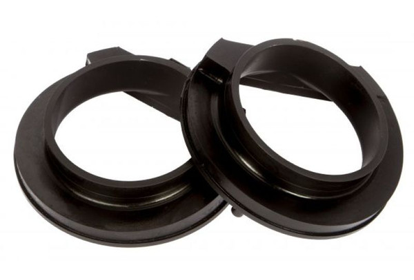 Daystar bow correction coil isolators will correct the geometry of your lift kit's front springs. Many kits use the ORG.MFR coil isolator which causes the front coil springs to flex outward and rub against the suspension. This could eventually cause a catastrophic failure of your suspension. Daystar coil isolators replace the factory ones to correct the issue and eliminate the premature wear of your suspension system. The isolators install quickly without the need for specialized tools. Correct the bow of your front lift springs with Daystar coil isolators.
