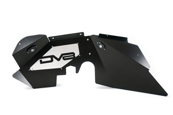 DV8 Off Road Aluminum inner fenders are designed to reseal your engine compartment when using aftermarket fenders, clean up your inner fender, and provide better air flow where it counts. Our inner fenders also allow easy access to the shocks and do not require for the fender and inner fender to be removed like our competitors! DV8 Inner fenders are available in raw aluminum or powder coated black. Optional Bluetooth powered rock lights are also available. Patent Number US D785,522 S.