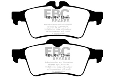 Designed for premium street driving offering better brake effect up to 600-degrees C (1100-degrees F). EBC Greenstuff has a high initial brake effect and gives drivers confidence from first application of the brake pedal. There is no such thing as a NO DUST pad. The very nature of how a brake works requires that some dust be generated to avoid rotor vibration (shimmying). The EBC pad creates less dust and dust is more easily washed off than most. All pads create more dust as they are bedding in especially if rotors are worn. Nominal friction coefficient 0.55. For heavier faster cars and vehicles above 200bhp we strongly recommend Redstuff which DOES offer much less dust.