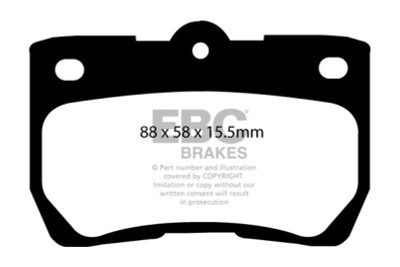 This is a truly impressive fast road pad for repeated heavy braking. It emits far less dust than semi-metallic pads and has been proven to stop a passenger car/sedan/sport compact/hot hatch 13 meters quicker than Original Manufacturer pads from 100mph/160kph. Features EBC Brake-In surface coating which conditions rotor surface and accelerates pad bed-in. Nominal friction coefficient 0.5 with approx. 50-percent dust reduction. Most EBC Red Ceramic pads are approved to ECE R90 brake safety regulation.
