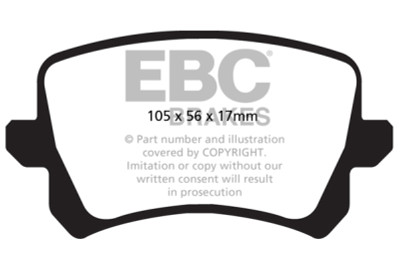 This is a truly impressive fast road pad for repeated heavy braking. It emits far less dust than semi-metallic pads and has been proven to stop a passenger car/sedan/sport compact/hot hatch 13 meters quicker than Original Manufacturer pads from 100mph/160kph. Features EBC Brake-In surface coating which conditions rotor surface and accelerates pad bed-in. Nominal friction coefficient 0.5 with approx. 50-percent dust reduction. Most EBC Red Ceramic pads are approved to ECE R90 brake safety regulation.
