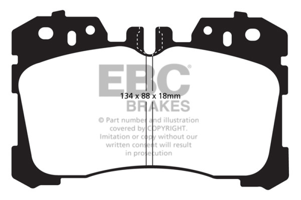 This is a truly impressive fast road pad for repeated heavy braking. It emits far less dust than semi-metallic pads and has been proven to stop a passenger car/sedan/sport compact/hot hatch 13 meters quicker than Original Manufacturer pads from 100mph/160kph. Features EBC Brake-In surface coating which conditions rotor surface and accelerates pad bed-in. Nominal friction coefficient 0.5 with approx. 50-percent dust reduction. Most EBC Red Ceramic pads are approved to ECE R90 brake safety regulation.