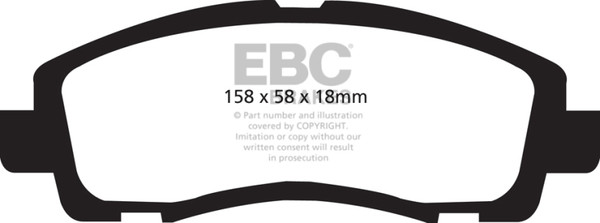 This is a truly impressive fast road pad for repeated heavy braking. It emits far less dust than semi-metallic pads and has been proven to stop a passenger car/sedan/sport compact/hot hatch 13 meters quicker than Original Manufacturer pads from 100mph/160kph. Features EBC Brake-In surface coating which conditions rotor surface and accelerates pad bed-in. Nominal friction coefficient 0.5 with approx. 50-percent dust reduction. Most EBC Red Ceramic pads are approved to ECE R90 brake safety regulation.