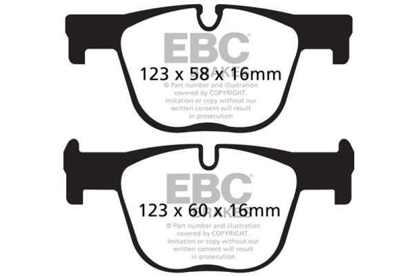 This is a truly impressive fast road pad for repeated heavy braking. It emits far less dust than semi-metallic pads and has been proven to stop a passenger car/sedan/sport compact/hot hatch 13 meters quicker than Original Manufacturer pads from 100mph/160kph. Features EBC Brake-In surface coating which conditions rotor surface and accelerates pad bed-in. Nominal friction coefficient 0.5 with approx. 50-percent dust reduction. Most EBC Red Ceramic pads are approved to ECE R90 brake safety regulation.