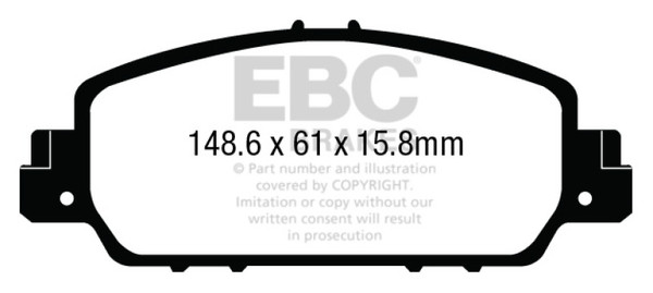 Designed for premium street driving offering better brake effect up to 600-degrees C (1100-degrees F). EBC Greenstuff has a high initial brake effect and gives drivers confidence from first application of the brake pedal. There is no such thing as a NO DUST pad. The very nature of how a brake works requires that some dust be generated to avoid rotor vibration (shimmying). The EBC pad creates less dust and dust is more easily washed off than most. All pads create more dust as they are bedding in especially if rotors are worn. Nominal friction coefficient 0.55. For heavier faster cars and vehicles above 200bhp we strongly recommend Redstuff which DOES offer much less dust.