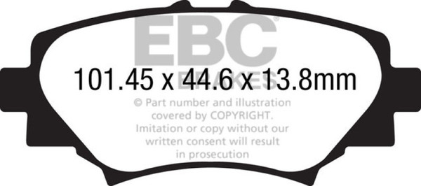 This is a truly impressive fast road pad for repeated heavy braking. It emits far less dust than semi-metallic pads and has been proven to stop a passenger car/sedan/sport compact/hot hatch 13 meters quicker than Original Manufacturer pads from 100mph/160kph. Features EBC Brake-In surface coating which conditions rotor surface and accelerates pad bed-in. Nominal friction coefficient 0.5 with approx. 50-percent dust reduction. Most EBC Red Ceramic pads are approved to ECE R90 brake safety regulation.
