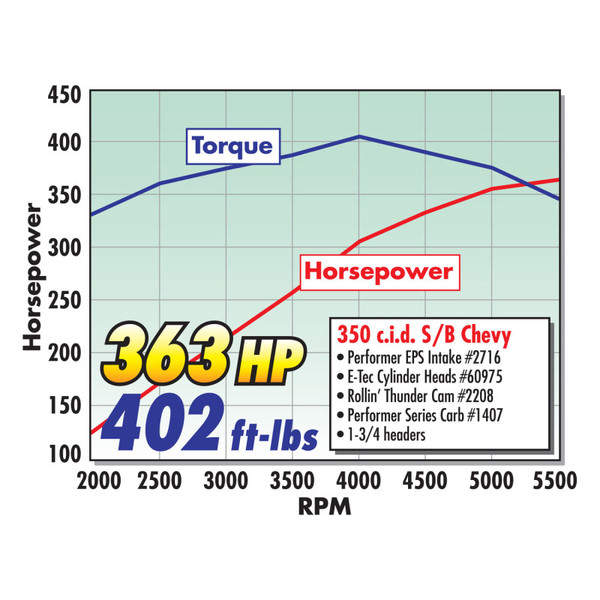 Edelbrock Rollin' Thunder Camshaft #2208 is designed for 265-350 V8 Chevy engines from 1957-86 and produces optimum torque from the low-end to the mid-range. Rollin' Thunder camshafts should be matched with Performer manifolds for vehicles operating from off-idle to 5500 rpm. They are smooth idling cams for daily drivers, trucks, vans, RVs and 4x4s. You can expect a major improvement in throttle response and torque. In the manifold section you'll find torque graphs showing the power gains from Performer manifolds and Performer-Plus cams. All camshafts include flat tappet lifters (except for cams designed for use with stock roller lifters), assembly lube and instructions. This cam produced 363HP and 402 Ft Lbs of Torque when paired with Performer EPS intake manifold #2716, Performer Carb #1407, Performer E-Tec cylinder heads #60975 and Edelbrock roller tappet lifter set #97423. Must be used with a thrust button. Camshaft specifications: - Intake duration: 212 Degrees - Exhaust duration: 222 Degrees - Intake lift: .462" - Exhaust lift: .479" - Lobe separation: 112 Degree - Intake Center Line: 107 Degree - Vacuum: 16"