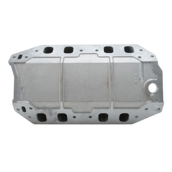 Edelbrock part #28001 Big Victor 2 Spread-Port intake manifold is designed for large cubic-inch or high rpm drag racing big-blocks with Edelbrock Big Victor, Dart Big Chief or Brodix Big Duke cylinder heads, this manifold has an average runner area of approximately 4.75 sq. in. The port exits have been reduced to accommodate the wide variety of intake port sizes and require port matching. The runners have a minimum corner radius of .500" from the plenum to the exit allowing the popular oval port shape to be used. The outside runners are shorter and straighter than competitor's manifolds and the plenum is longer front to back. These features, combined with approximately 5% taper in runner cross-sectional area, give better top end horsepower while maintaining consistency and throttle response off the stop. All applications are equipped with a 4500 Series flange and will accept 2.25" throttle body butterflies without a spacer or modification.