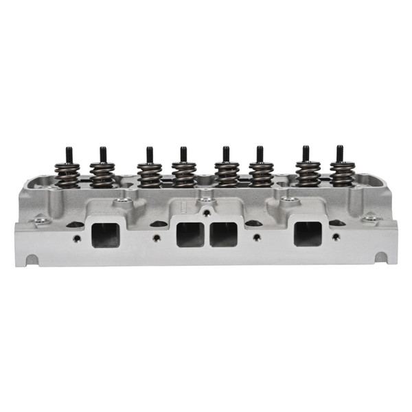 The Edelbrock #61029 Performer RPM Cylinder Head for 1965-76 Oldsmobile 400, 425 and 455 CID V8 engines with hydraulic flat tappet cam is a perfect performance upgrade for big-block Olds-powered street machines and muscle cars. This aluminum cylinder head supersedes the 60519 Olds head and features a redesigned 77cc combustion chamber, larger intake valves and refined bowl blending for improved flow. The #61029 Performer RPM head has improved accommodation for a factory-style mechanical fuel pump with spark plug locations moved slightly towards the exhaust valve for optimized combustion. Intake and exhaust ports have been improved over previous designs, and extra material has been added above the intake port for head work. Performer RPM #61029 heads are cast and machined by Edelbrock in the USA and comes complete with the highest quality intake and exhaust valves and valve springs.
