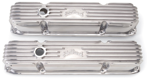 The Edelbrock #4192 Classic Series Valve Covers are designed for Chrysler Big-Block 383/440 applications. Edelbrock first made these aluminum valve covers in the late '50s and they're still a classic. Made of heavy-gauge sand-cast aluminum, Overall height is measured from base to top at the highest point. Edelbrock classic valve covers can be machined to accept breathers if desired.
