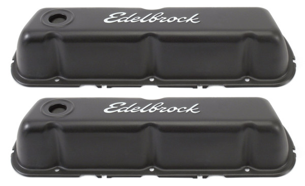 The Edelbrock #4603 Signature Series Valve Covers are designed for Ford 260-289-302 (not Boss) and 351W V8 applications. Engineered for function and styled for great looks, Signature Series valve covers have stock-style breather baffles that prevent oil passage to the PCV valve. These quality valve covers accept all emissions equipment, including PCV valve holes. Rubber grommets for the breather and PCV valve holes are included. Matching breathers sold separately.