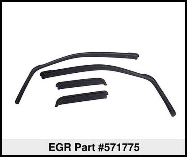 EGR MATTE BLACK In-Channel Window Visors are designed to promote fresh air circulation inside the vehicle. These fully integrated, custom molded designs help to reduce windshield fogging in wet weather for safer driving, and can lower interior temperatures in parked vehicles. The UV protected finish is easy to clean. Limited lifetime warranty. FRONT & REAR SET.