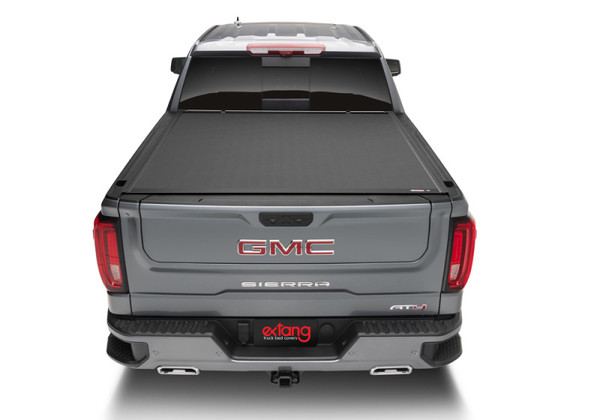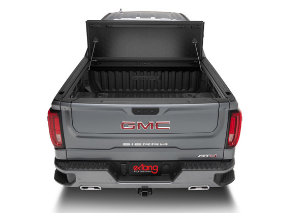 Introducing Extang's Xceed – a seamless and secure hard folding truck bed cover designed and engineered to greater expectations. This flush mounted, hard-folding cover offers full bed access when open, and adds a seamless and polished look to your truck when closed. Xceed was precisely Extang Engineered to provide excellent coverage while ensuring maximum security and ultimate style. Go completely sleek without minimizing the durability of your truck bed cover. Flush mounted to provide an extreme low profile appearance and engineered to complement your truck's functionality and looks. Xceed's matte black finishes are the final touches to enhance the overall appearance of your truck. Xceed also goes double duty on superior security. The EnduraCoat moisture-proof vinyl covering is dedicated to protecting your cargo from earth's elements and the Secure Rotary Release knob hides the operation cable to add an extra step of protection. Together, you can rest assured that your cargo is entirely secured. Stowing large cargo just got easier. Xceed folds all the way up to the back window, allowing complete, full bed access with a unique four-panel construction to reduce the overall height when open.