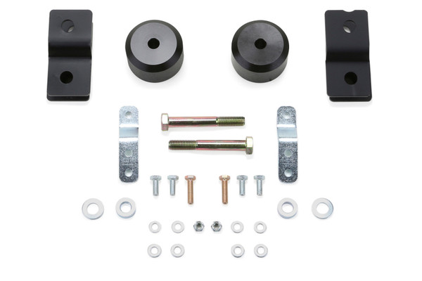 Fabtech Leveling Kits provide a small amount of lift for the front of the vehicle. This will typically help to level the stance of the vehicle's ride height front to rear as compared to the nose down appearance from the factory. With the added ride height it allows for the installation of larger tires and wheels for a more aggressive look. The installation of the kit is typically very simple and can be done with basic hand tools. There is no modification of the vehicle required for installation and can be returned back to stock if needed. All Fabtech Leveling Kits have undergone extensive engineering to properly function without placing the ball joints and tie rods into bind. This is an important feature as some taller kits on the market create bind and can result in failure of those parts over time. Fabtech offers an exclusive Trade Up program on all their Leveling Kits. If you ever want to step up to a complete 4'' or 6'' Fabtech'suspension system after you buy a Leveling Kit, you can trade in the previously purchased kit towards the price of a new Fabtech'system. Please see program details. All Fabtech Leveling Kits come with a free 5 year 60,000 mile Powertrain warranty. Please see program details. This system includes steel spacers, coil isolators, sway bar brackets and front shock extensions.