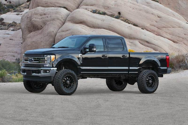 For the ultimate in suspension performance for the Super Duty we offer a bolt on 4 Link System that provides unsurpassed articulation and wheel travel. These 2 diameter heavy wall links feature race style 1 Uniballs for superior strength. Thick 1/4 steel brackets secure the 4 Links to the frame without cutting or welding. The system also includes Sway Bar Drops, Trac Bar relocation bracket, Pitman Arm, and U-Bolt kit.