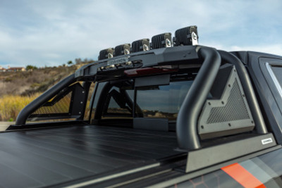 Go Rhino’s Sport Bar 2.0 can be installed on a full-sized and mid-sized truck bed along with your favorite snap, roll up and some folding tonneau covers. Now it’s no longer necessary to choose between a bed cover or adding functional lighting when making a dramatic appearance upgrade. The Sport Bar 2.0 offers two LED mounting options: the STANDARD FIXED MOUNT and the patented POWER-ACTUATED HIDEAWAY MOUNT. The standard version will raise your lights or LED light bar above your truck’s cab. The Power Actuated light mount is available pre-installed on the Sport Bar 2.0 or as a separate upgrade. This powered mount will allow you to, at the flick of a switch from inside the vehicle, hide your lights in a protective light box without leaving your vehicle. This ability to retract your lights will be especially appreciated the next time you pull into a garage in inclement weather. (All lights sold separately). The Sport Bar 2.0 comes with a Limited Lifetime warranty on materials and construction and a 5 year warranty on the Textured Black Finish.