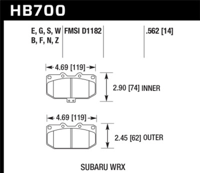 Hawk HB700W.562 DTC-30 Disc Brake Pad; 0.562 Thickness For 06-07 Impreza