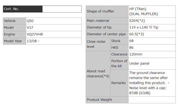HKS Infiniti Q50 Hybrid VQ37 Dual Hi-Power Titanium Tip Catback Exhaust - 32009-KN001