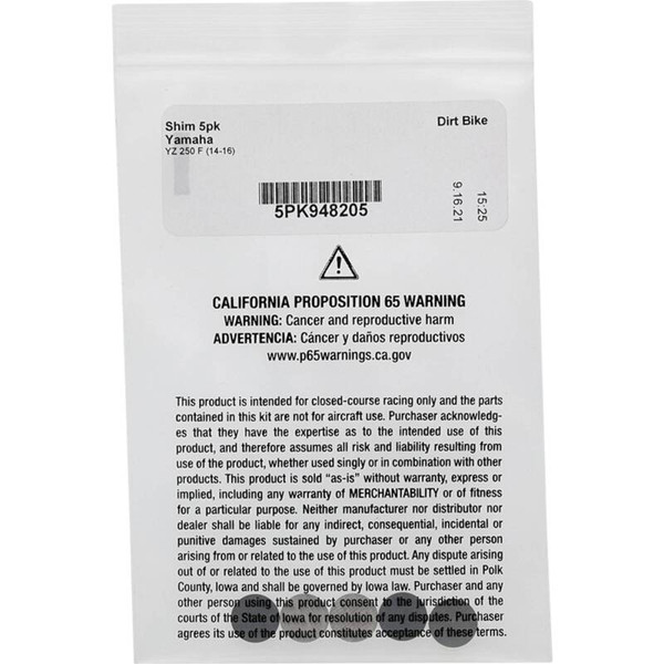 Hot Cams 2014-2016 Yamaha YZ 250 F 250cc 2.80mm 5 piece shim refill - 5PK948280