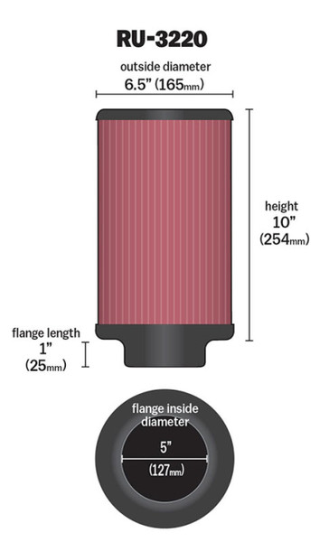 K&N Filter Universal Rubber Filter 5in Flange ID / 6.5in OD / 10in Height - RU-3220