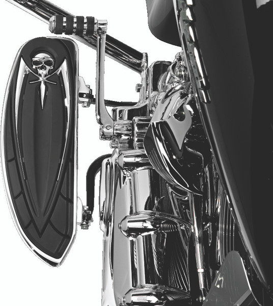 Repositions driver boards out 1 in. and forward 1 in. from stock location. Makes a noticeable difference in comfort. Thighs aren't as tight against the tank, right knee is not as tight against the air cleaner and legs get to stretch more.