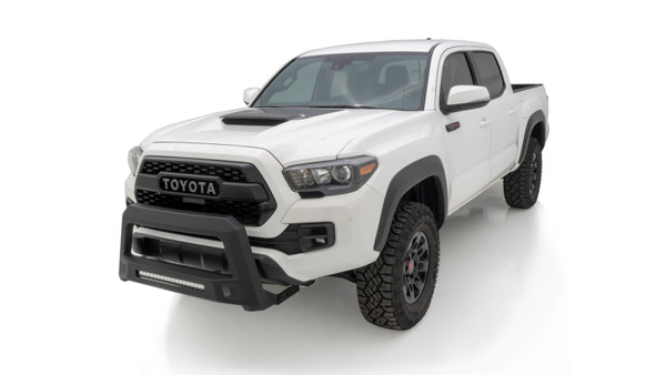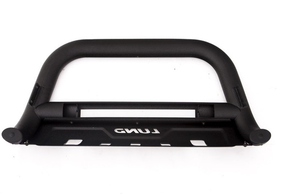 Whether the truck has aggressive lines or more refined curves, the LUND Revolution Bull Bar delivers extra front-end protection with its leading edge, chiseled three-dimensional design. LUND Revolution is constructed from heavy-gauge stamped steel with a light textured matte-black, powder coated finish. The rugged style features an integrated off-road LED light bar with a wiring kit, and installs with no drilling.