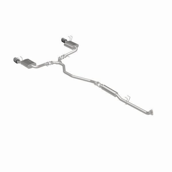 The MagnaFlow Honda Civic NEO Series Cat-Back Performance Exhaust System # 19612 upgrades your 2022-2025 Honda Civic EX or Touring’s 1.5L engine with dyno-proven performance and the latest version of our signature exhaust sound. This performance exhaust kit is designed to replace all your Civic’s OEM exhaust components from near the catalytic converter on back and utilizes an easy to install direct-fit design with all connections flanged. #19612 features 2.25” diameter mandrel bent main piping that passes through a 14” round straight-through performance muffler and two 11” straight-through oval performance mufflers before ending in a dual split rear exit with 4” double-wall angle cut dry carbon fiber tips. Each of these Honda Civic performance exhaust systems is produced using advanced CNC precision robotic manufacturing techniques and made of durable, corrosion resistant stainless steel, all backed by MagnaFlow’s limited lifetime warranty.