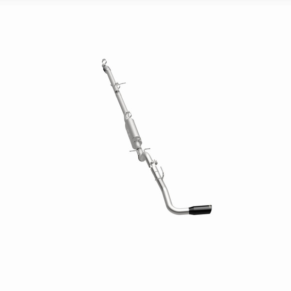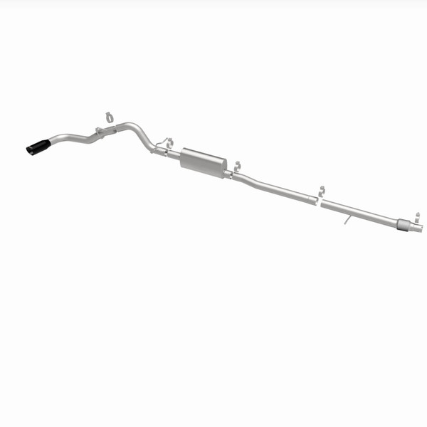 The MagnaFlow 2024-2025 Ford Ranger SPEQ Series Cat-Back Performance Exhaust System 19634 brings out the personality of your truck with our signature resonant, powerful exhaust tone and dyno-proven performance. #19634 3" diameter mandrel bent main piping passes through an all-new specifically tuned performance oval muffler before exiting in a single driver side rear exit with a 4" black chrome welded-on double wall angle cut rolled edge tip. This mid-size truck exhaust kit is the perfect equalizer between sound and performance. Upgrade your truck to the next level with an exhaust that has the pipes to put other trucks to shame. With this system your truck will be producing moderate exterior and mild interior sound levels while leaving other trucks feeling envious at every stoplight. Exhaust kit 19634 features a cat-back exhaust layout that replaces your trucks stock exhaust components from near the catalytic converter on back. Extensive 3D scanning during development has resulted in a direct-fit design that you can easily install yourself. 19634 is produced using CNC precision robotic manufacturing techniques and is backed by MagnaFlow's 1-year limited finish warranty and limited lifetime construction warranty.