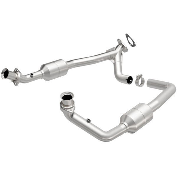 Keep the check engine light off with MagnaFlow OEM Grade Federal/EPA Compliant Direct-Fit Catalytic Converter 51378. With features including free-flowing mandrel-bent tubing and highly corrosion resistant stainless steel construction, easily install this spun body converter yourself using the proper tools, no cutting or welding required. MagnaFlow's state-of-the-art metrology department uses the latest 3D scanning systems during research and development, so you can be confident that your new part will fit and function like the original equipment. By replicating the OE spun body design, the single laser fusion weld greatly reduces the possibility of a leak, and our compact, low-mass design also allows for greater thermal efficiency. Designed to fit the 2000-2003 Ford E-350 Super Duty, 2000-2002 Ford E-250 Econoline, and more, this direct-fit catalytic converter also interchanges with OE parts 1C2Z-5F250-BA and YC2Z-5F250-AA, among others. The included gaskets & hardware reduce the possibility of a leaking seal while avoiding the need to reuse corroded factory parts for installation. This replacement part is designed to meet or exceed Federal emissions requirements set forth by the EPA, complying with legal standards for OBDII Federally registered vehicles with California or Federal/EPA Emission systems.