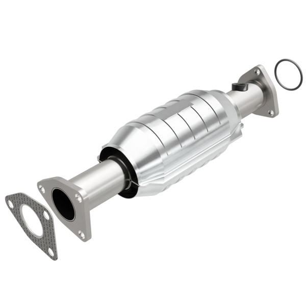 Keep the check engine light off with MagnaFlow HM Grade Federal/EPA Compliant Direct-Fit Catalytic Converter 22641. With features including free-flowing mandrel-bent tubing and highly corrosion resistant stainless steel construction, easily install this spun body converter yourself using the proper tools, no cutting or welding required. MagnaFlow's state-of-the-art metrology department uses the latest 3D scanning systems during research and development, so you can be confident that your new part will fit and function like the original equipment. By replicating the OE spun body design, the single laser fusion weld greatly reduces the possibility of a leak, and our compact, low-mass design also allows for greater thermal efficiency. This direct-fit catalytic converter is designed specifically for the 1995-1997 Honda Accord and interchanges with OE part 18160-P0G-A00. Avoid potential exhaust leaks by using the included gaskets to get a proper seal. This replacement part is designed to meet or exceed Federal emissions requirements set forth by the EPA, complying with legal standards for OBDII Federally registered vehicles with Federal/EPA Emission systems.