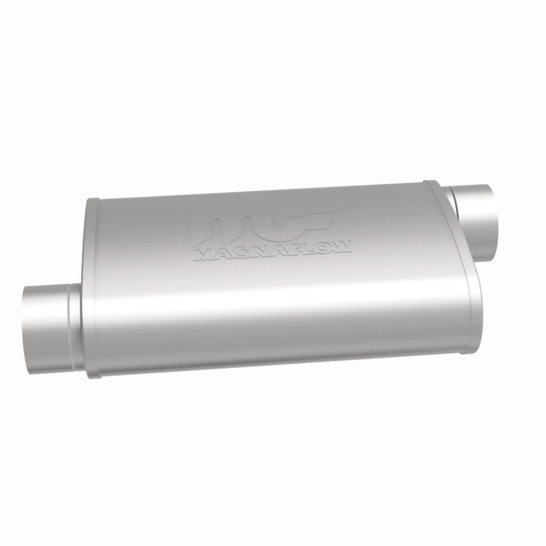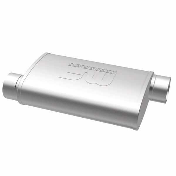 The MagnaFlow 4 x 9in. Oval Straight-Through Performance Exhaust Muffler 11239 is engineered to enhance your ride with a healthy helping of our signature exhaust sound and dyno-proven performance thanks to its free-flowing straight-through perforated stainless steel core wrapped in stainless steel mesh and acoustic fiber fill. The reversible, universal 3/3in. diameter inlet/outlet Straight-Through layout allows you to install it in whatever orientation and configuration you see fit. However, professional installation is highly recommended. Muffler 11239s weight-optimized 4x9x14in. oval-shaped body features a satin finish that elevates the overall aesthetics of your current exhaust setup. 11239 is made of durable, corrosion resistant stainless steel and produced using cutting-edge CNC precision robotic manufacturing techniques, all backed by MagnaFlow's limited lifetime construction warranty.